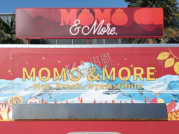 Custom food trucks support logo stickers and illuminated roof signage for branding