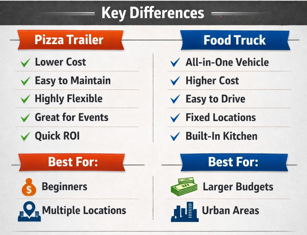 If you want lower risk, flexibility, and faster return, a pizza trailer is often the smarter choice.