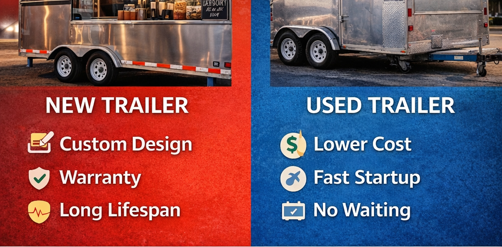 Used trailers can be cheaper upfront but may come with hidden maintenance issues. New beverage trailers offer reliability, customization, and better long-term value.